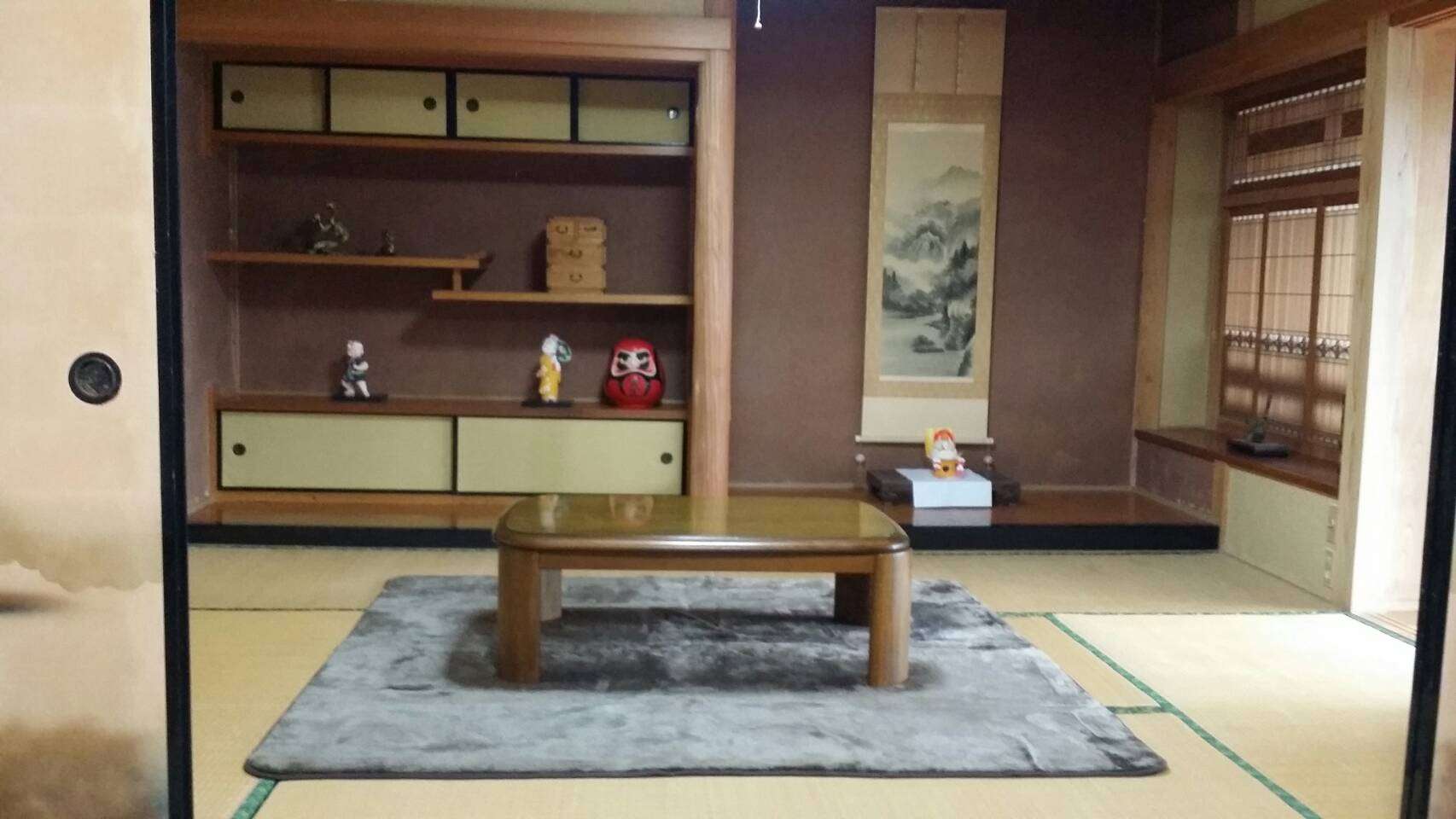 書院造の床の間と畳の広間。掛け軸と木格子が映える、静寂の和空間でくつろぐひととき。